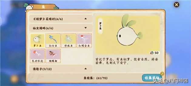 3、萝卜鱼、蝴蝶鲤在未时一刻可以获得。