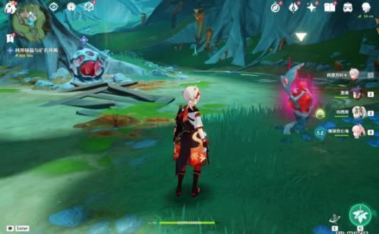 3、之后到达任务指引处,可以看到一只仙灵,这时我们上岸即可;