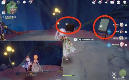 5、之后去帮玛梅赫采集颜料,有些小伙伴可能不知道这里到底要怎么才能逛,其实这里就是需要与玛梅赫家周围的闪光的可以交互的物品交互,依次查看一遍即可完成这个阶段;