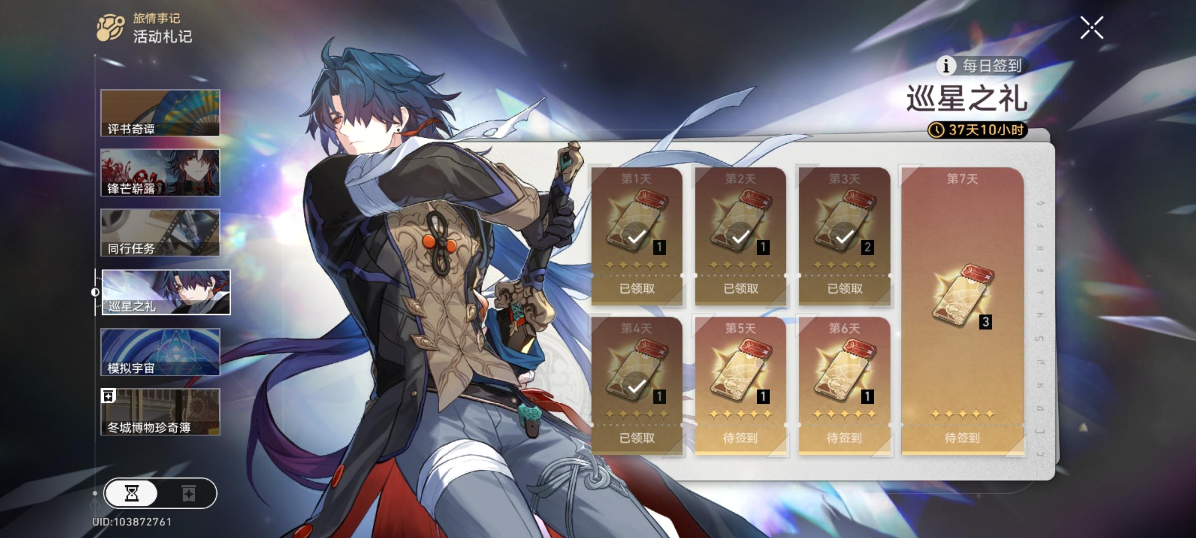 说明:维持一整个版本的签到活动,其中任意7天上线签到即可获得10连抽,参与难度为0,强烈推荐完成。