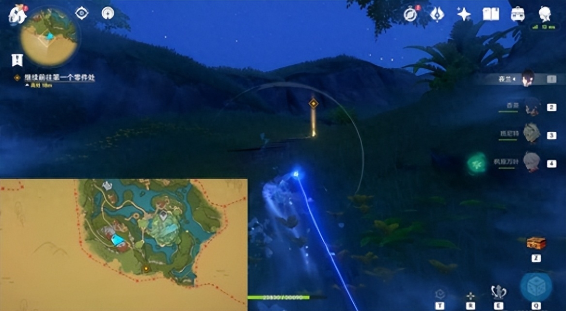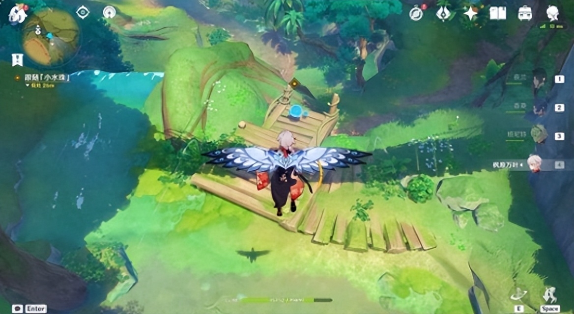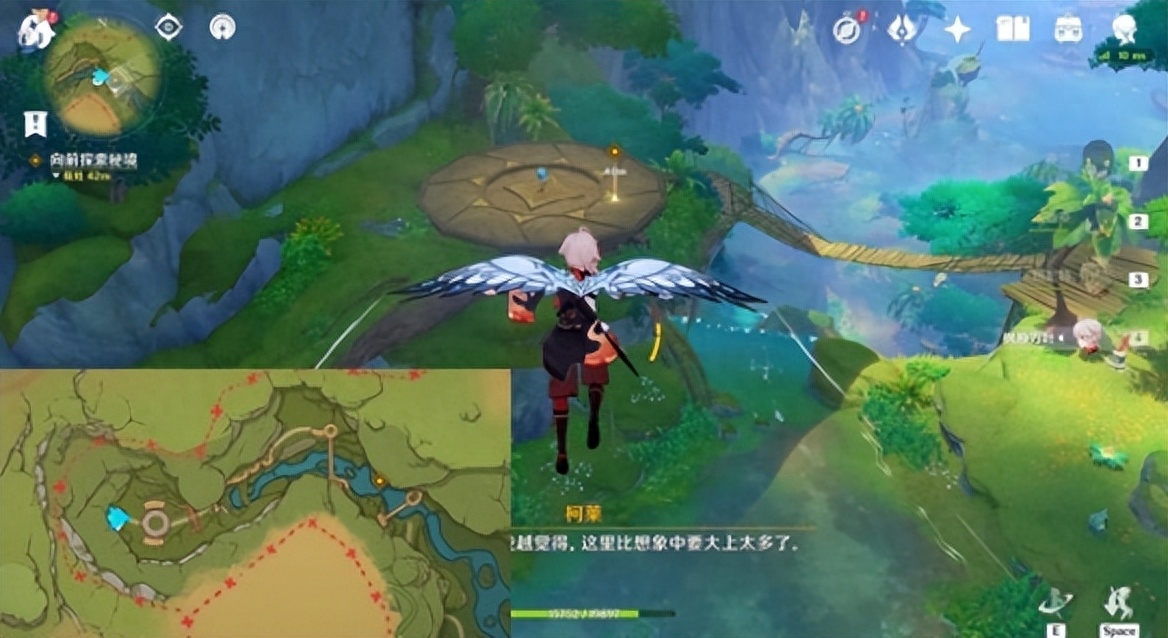 然后往地图的北方向飞,利用四叶印,前往空中悬浮平台,开启锚点3,沿着空中悬浮平台边缘走。