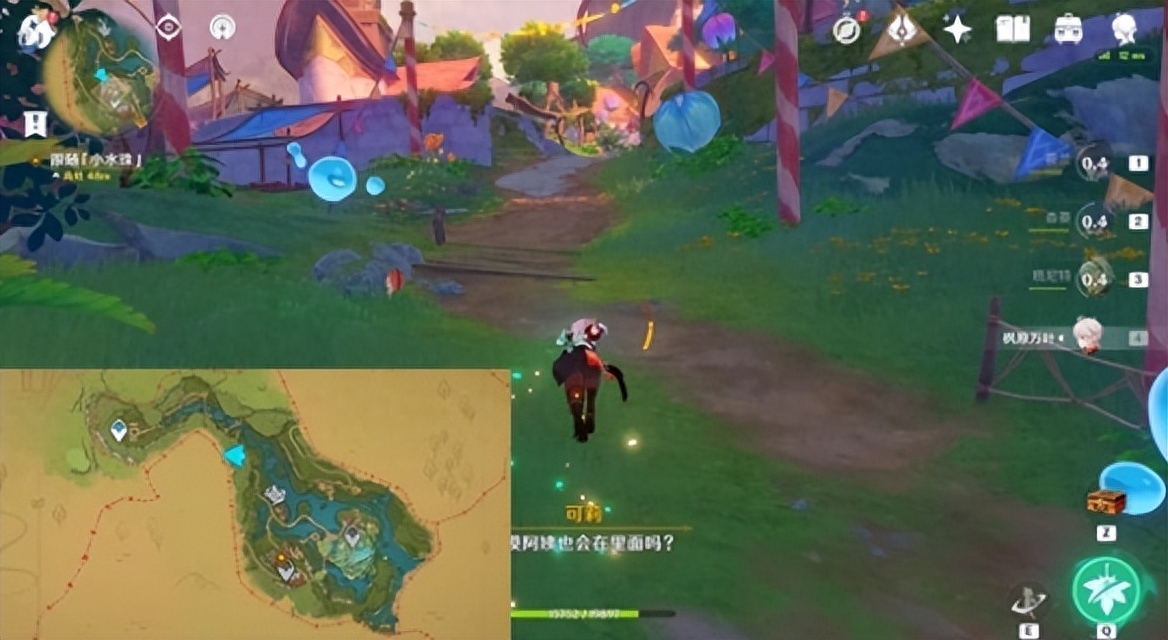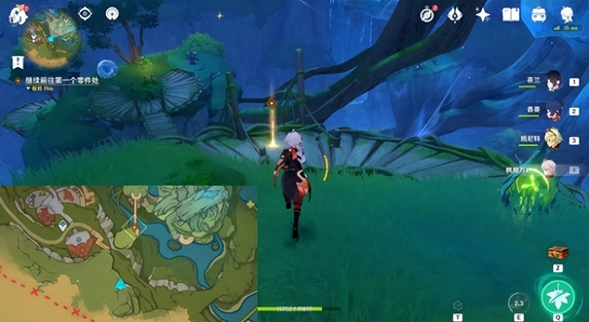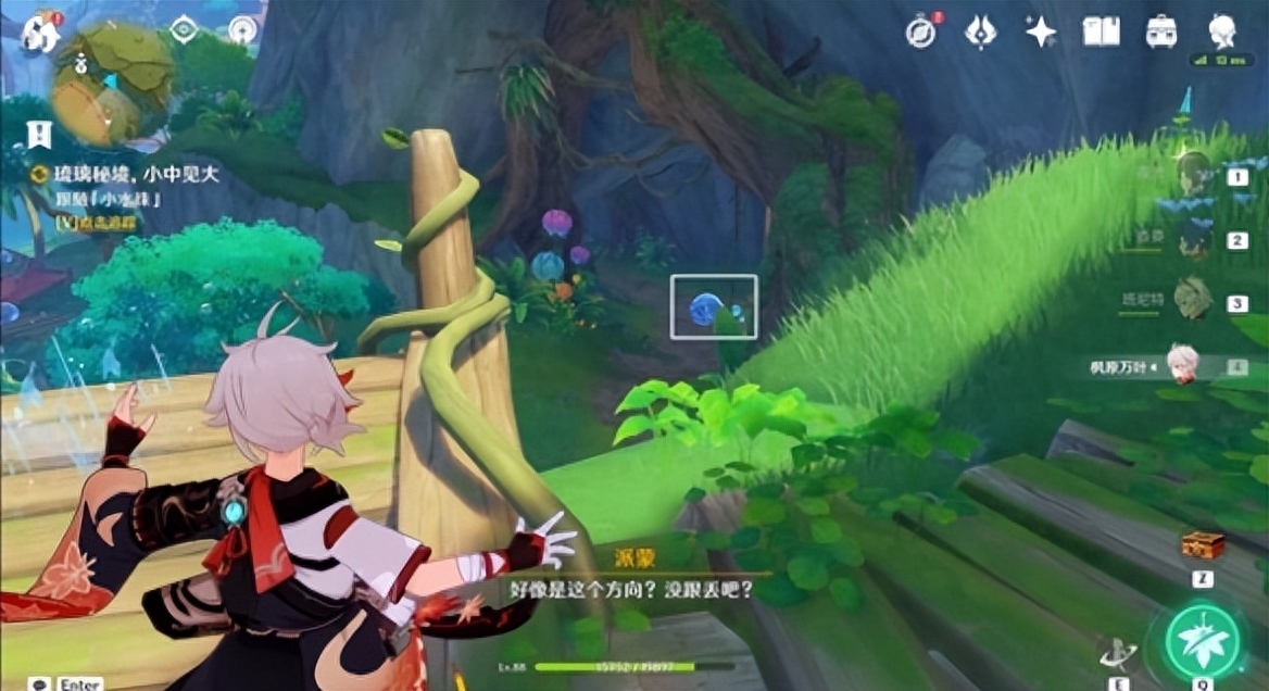 往地图的东南方向飞,前往提纳里住所。找到与优菈和柯莱角色进行对话操作,完成漫长的对话后,触碰瓶子,进入秘境。