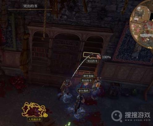 2、书架上则是有三个突出的书,按错了会触发陷阱。