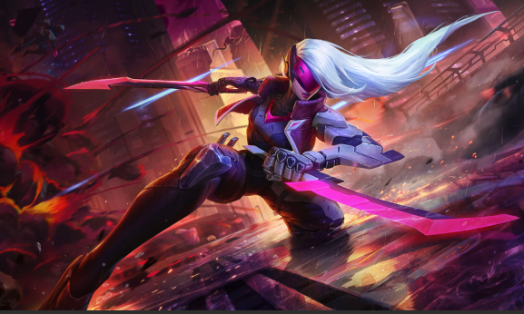 卡特在当前版本中,十分热门。卡特的E技能可以在拾取匕首以后减少极大量的CD时间。这让卡特机动性成为联盟中数一数二的一位英雄。在对线时,卡特可以利用Q技能先行消耗对手,再使用W在后方留下一个匕首。在E技能去攻击敌方英雄拾取Q技能留下的匕首之后回到W留在后方的匕首上进行消耗。这需要急快的手速和反应能力,稍不注意可能就会反过来被敌方打一套。如果发现伤害足够,则可以继续利用E技能的追杀敌方英雄。