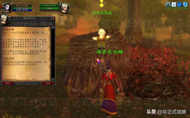 7、去西瘟疫之地的悔恨岭,找一个NPC麦兰达。(在乌瑟尔之墓前面,一个站在树桩上的女侏儒)。与之对话交任务,接到下一步【60团队】黑龙幻象。