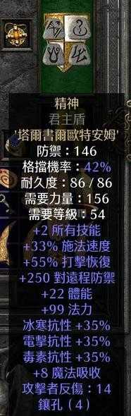 仍旧以上文的精神盾为例,我们可以看见其施法速度为33%,这个数值并非是一成不变的,该数值最大为35%,而每次打造精神盾,这个数值都是浮动的。