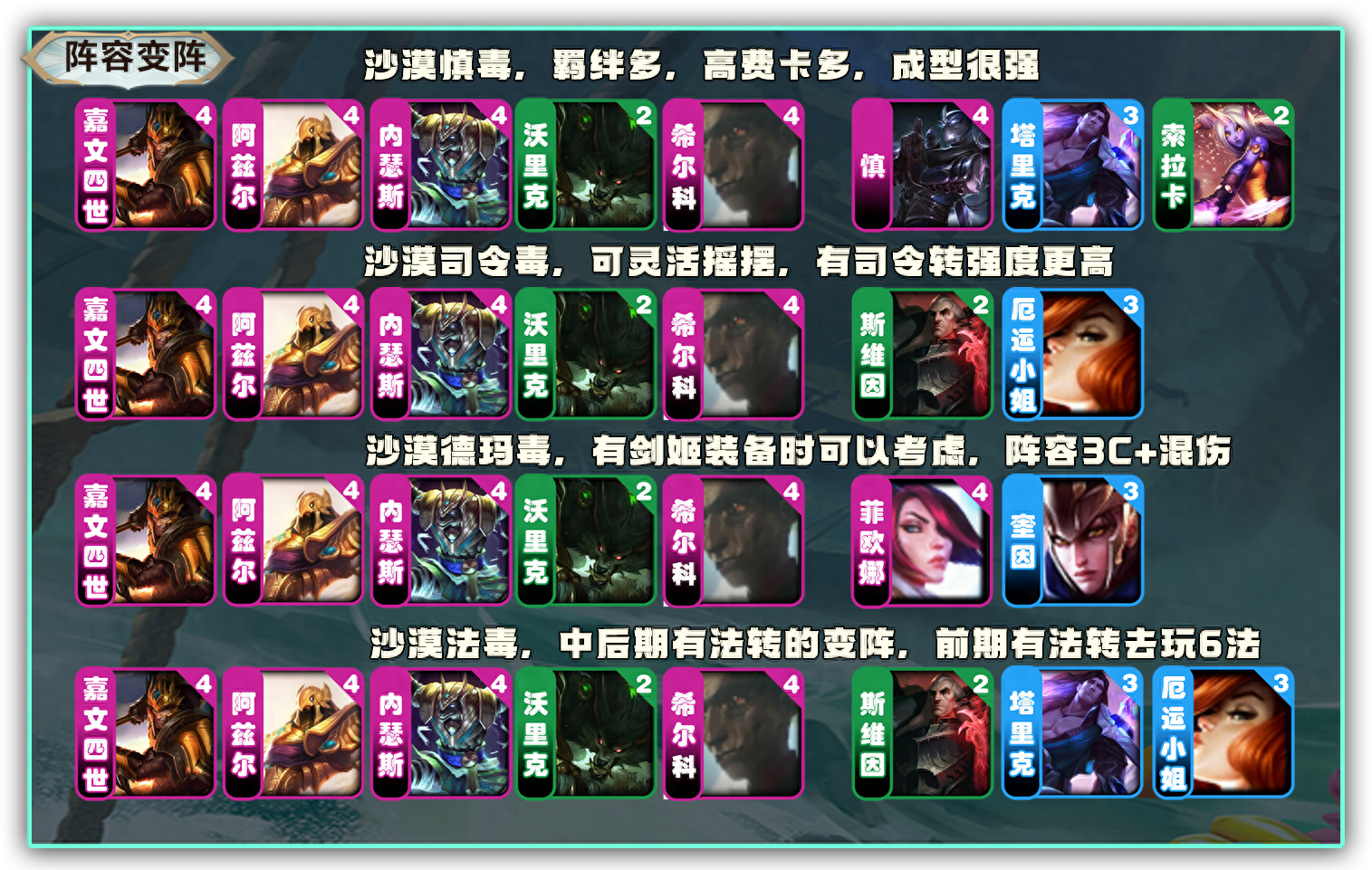 以上就是本期【沙漠慎毒】阵容介绍了。