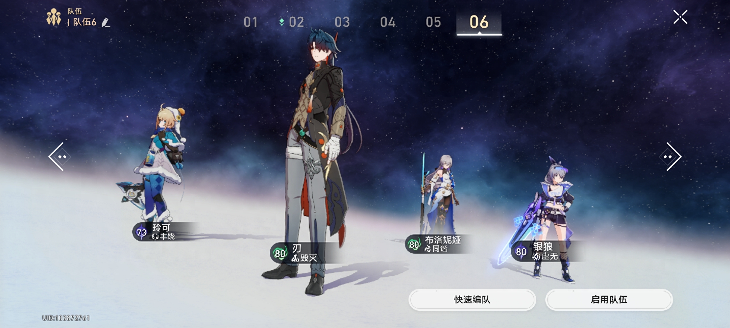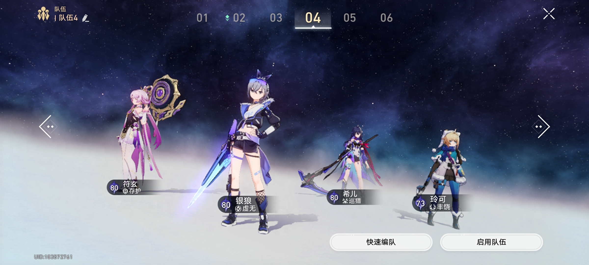 纯量子队:符玄+银狼+玲可+希儿/青雀