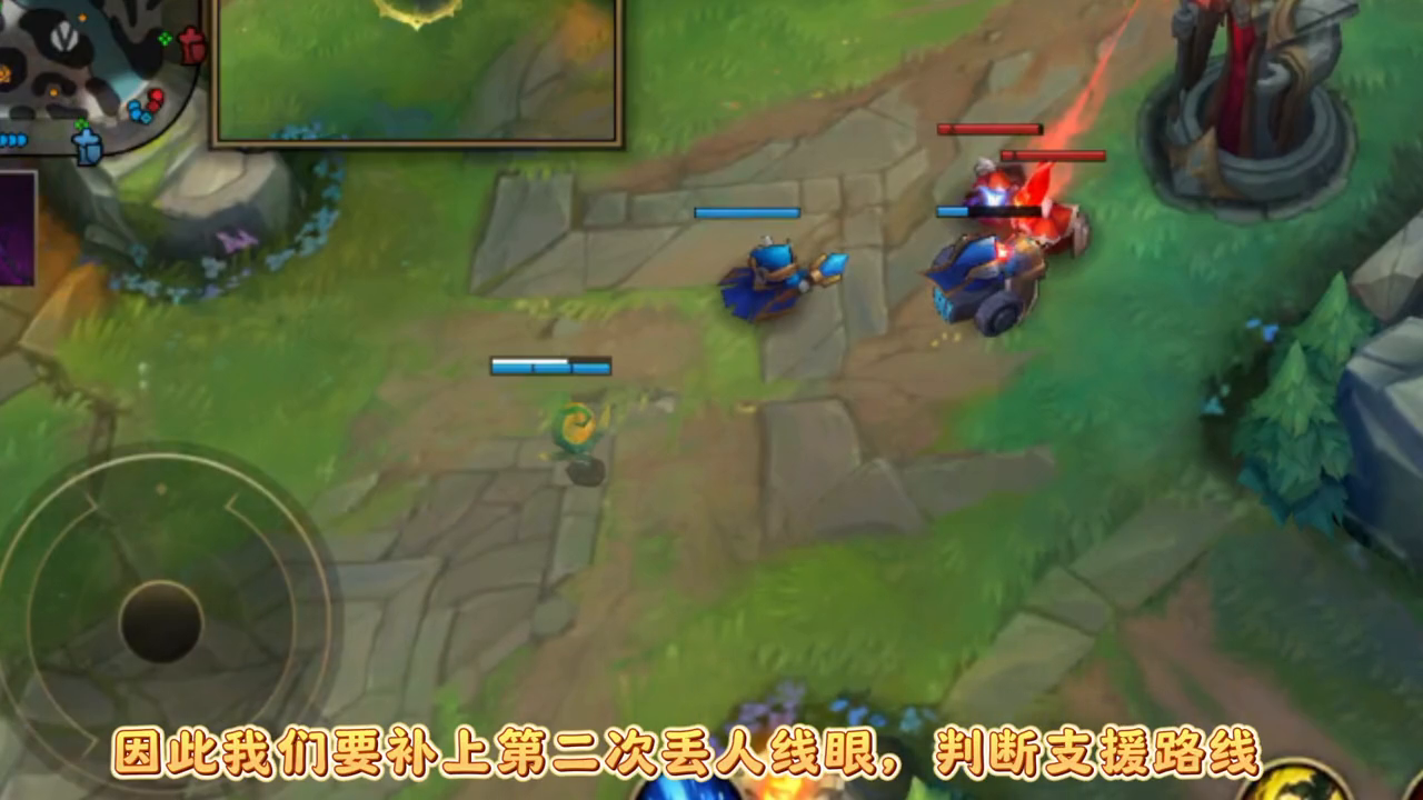 皮我们有一双法穿鞋,下次大招刷新的时间就是4分30秒左右,所以当你这个眼结束的时候就正式进入对线期的第三部分,因此我们要补上第二次丢人线眼,判断支援路线。这个眼决定资源团的归属,决定团队优势还是劣势的走向。