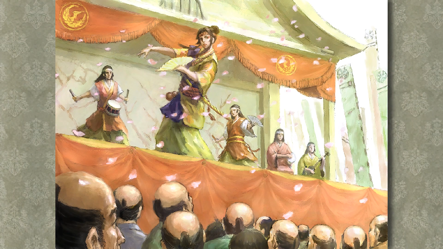 第一次来京之町还会出发特殊剧情,观看出云阿国的倾奇舞,结束后道场的武士还会邀请我们去学习武艺,不过目前首要任务是赚钱,就不浪费时间去练武了。