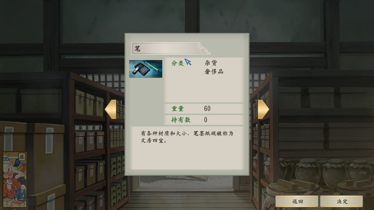 奈良之町的笔进货价12贯一支,在石山之町可以卖到18贯一支,又是一笔不菲的收入。