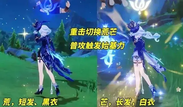芙宁娜的普攻平平无奇,主要是重击,可以自由切换芙宁娜的荒/芒始基力。