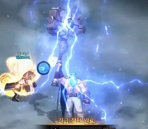 最终领主“大师父”使用貌似托尔之锤的武器进行闪电攻击。