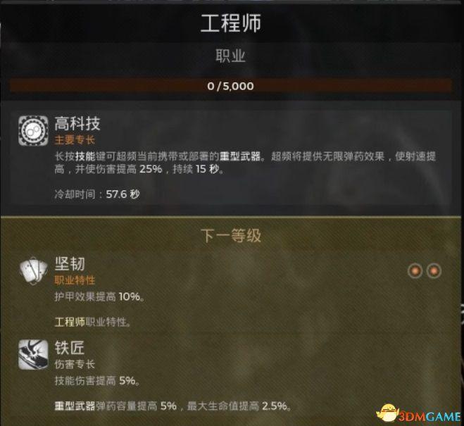 除此之外,每个职业还会有技能和专长随着等级提升而解锁。