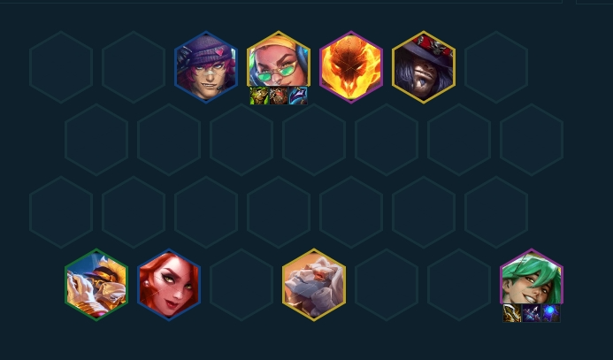 3-2升6,6人口根据情况可以不卖天选的金克斯或者潘森等继续过度,继续快速升人口先,或者运气好来卡特别胡,可以转大腕射手先。不过如果全是一费卡就不要变阵了,不然掉血太多,上8D卡压力太大了,一下D烂了就会老八走的。