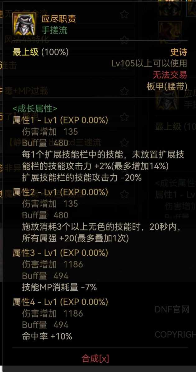 肩膀选红色魔女,40级技能20伤害和20cdr,传送属性选择非无色技能+30伤害词条