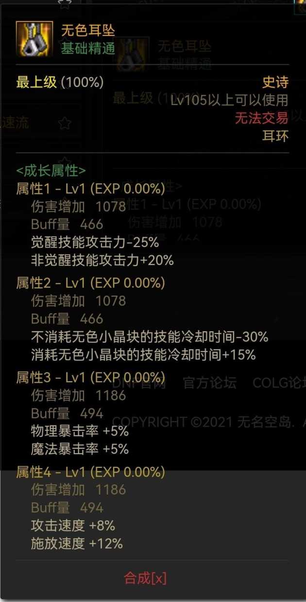 首先是主要增伤部位,耳环非觉醒技能增伤20,非无色技能30cdr,腰带下排技能增伤14,剑影同款