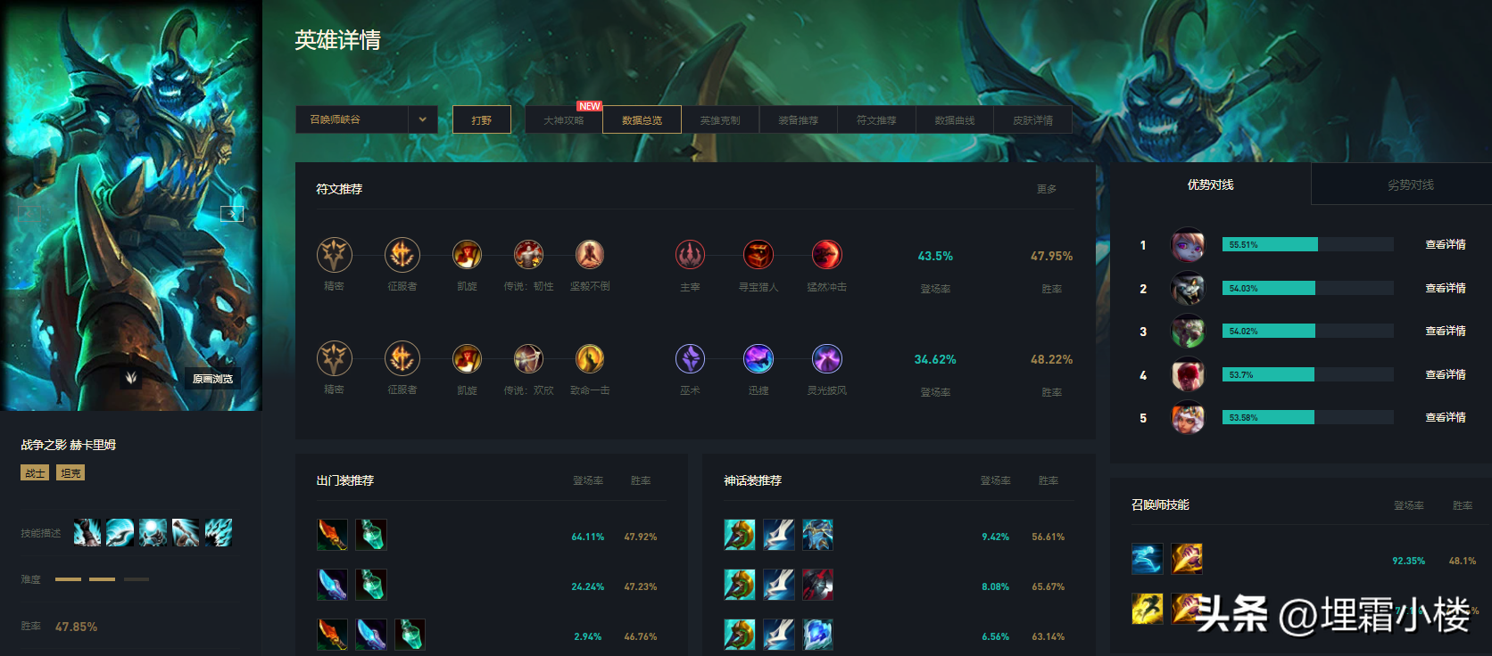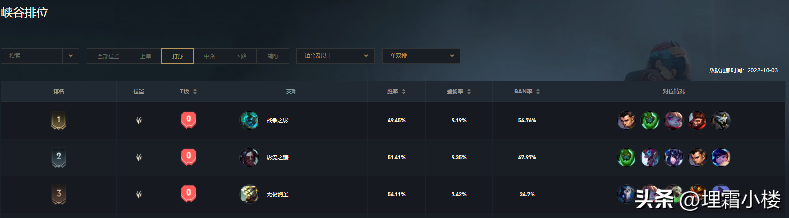 【战争之影:49.45%胜率、影流之镰:51.41%胜率、无极剑圣:54.11%胜率】
