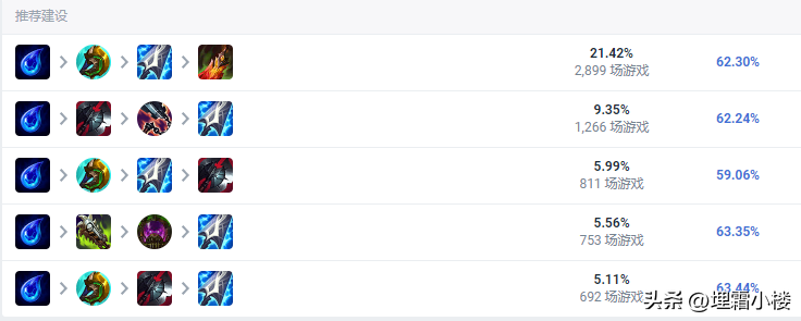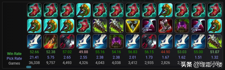 我们看一下韩服人马的出装思路,登场率和胜率都保持较高,但是和国服不同的是韩服的人马并没有全都是选择神分魔宗的玩法,而是有了更多的出装分支。