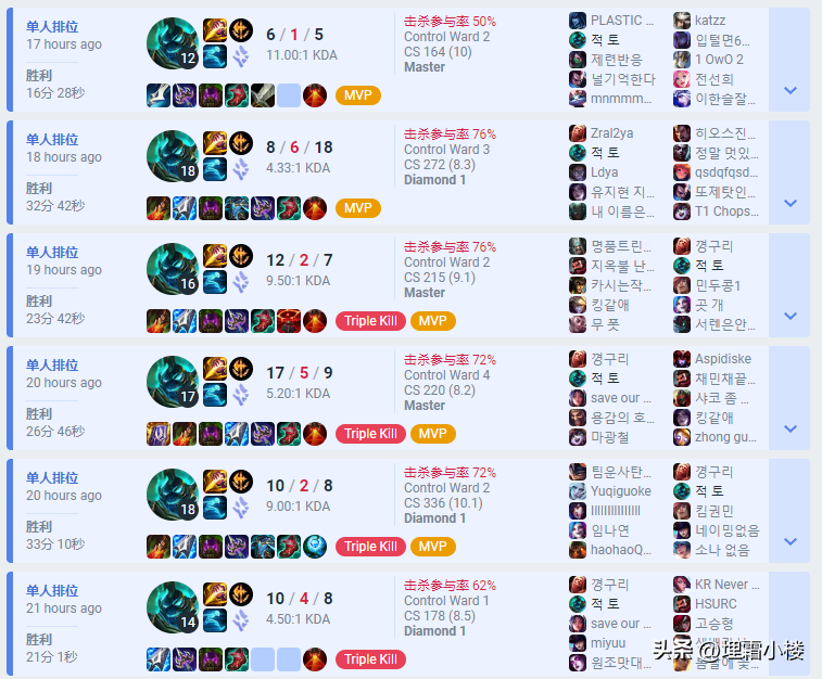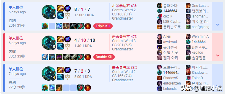 (该玩家800+人马场次,高胜率韩服大师)