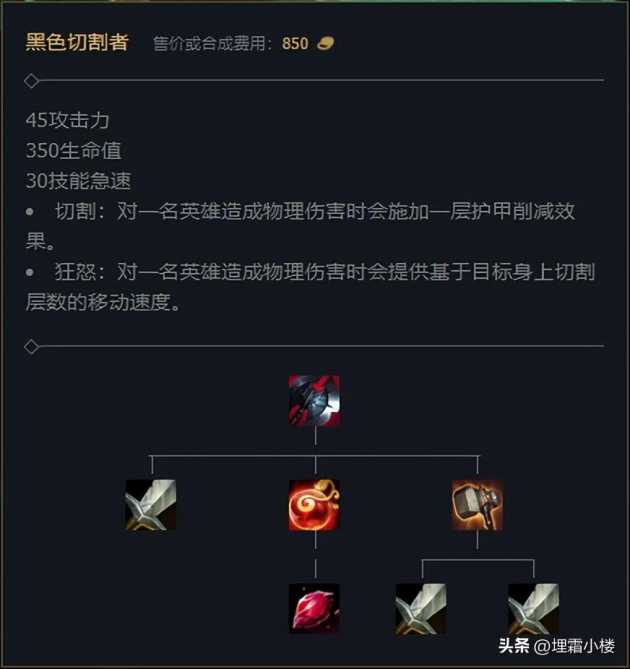 大约相差了300点伤害,但是黑切为人马提供了450生命值和30技能急速,并且还有穿甲效果和额外移速,这些属性都完美契合人马,同时还能够提升作战能力。