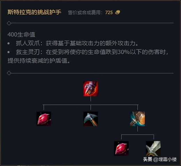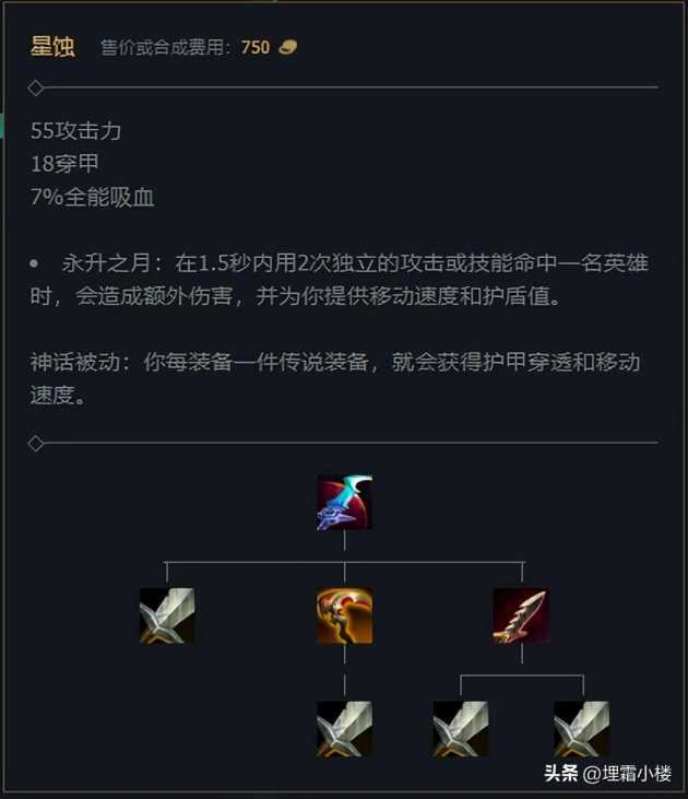 我们看星蚀这件装备,触发之后可以提供移动速度和护盾值,并且属性比较全面十分适合人马,尽管下个版本穿甲属性会被削弱到12点,但是对于人马这种基础伤害较高的战士英雄影响并不是很大。