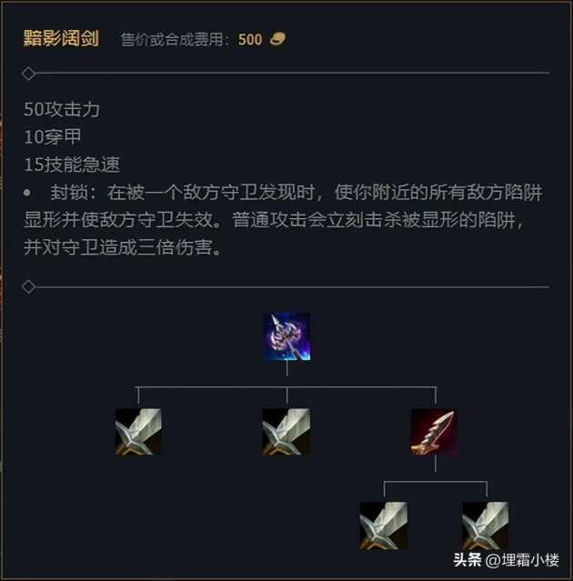 出装第一件装备我们选择黯影阔剑,因为黯影阔剑的装备属性和性价比都很高,并且能够保证人马前中期的作战能力,黯影阔剑和炼金罐两件装备都很便宜,不会十分托魔宗的进度,基本可以在女神泪叠满的时候刚好拿到魔宗。