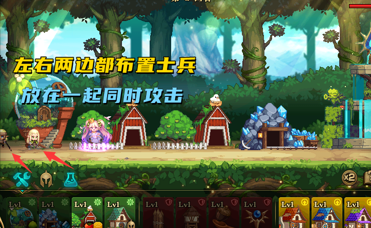 2、和一般塔防游戏不同,“精灵战歌”中的敌人会从左右两边同时攻击,所以常规情况下,需要在左右两边各布置一半士兵,尽量将士兵放在一起,这样他们会同时攻击,可以减少损失。