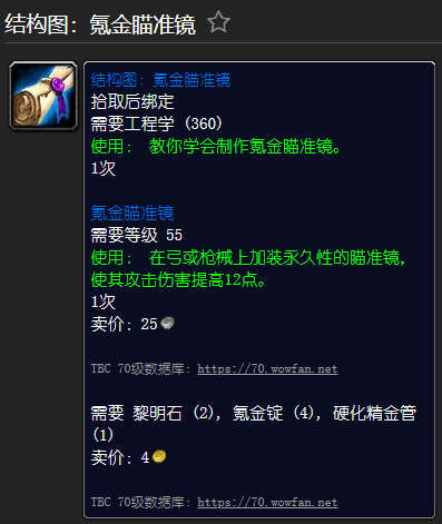 使用: 在弓或枪械上加装永久性的瞄准镜,使其攻击伤害提高12点.