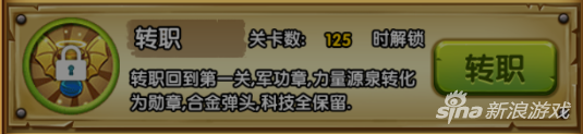 1、转职系统。每个玩家玩到一定关卡数时肯定都会遇到这样的问题,那就是:卧槽!BOSS怎么这么强,打不过啊!这个时候不要慌,先看看自己有没有打到125关,如果有,那你就有福啦!打开炮兵栏,点击转职按钮,关卡数,金币数虽然清零,但是人物的属性,弹头,科技全部保留,还可以一键挂机,瞬间闯过几十上百的关卡。怎么样,还不心动吗?