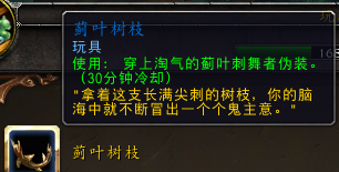 【蓟叶树枝】坐标:55.5 77.5,由"无人守卫的蓟叶宝箱"中开出,小地图有五角星标志,击杀一群小鬼,即可获得,非常简单!