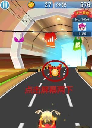前方出现铜锣的时候,玩家要在一定距离之前点击屏幕两下,游戏主角就能往前冲刺一阵从铜锣上撞过去了。撞击铜锣还可以得到额外加分。