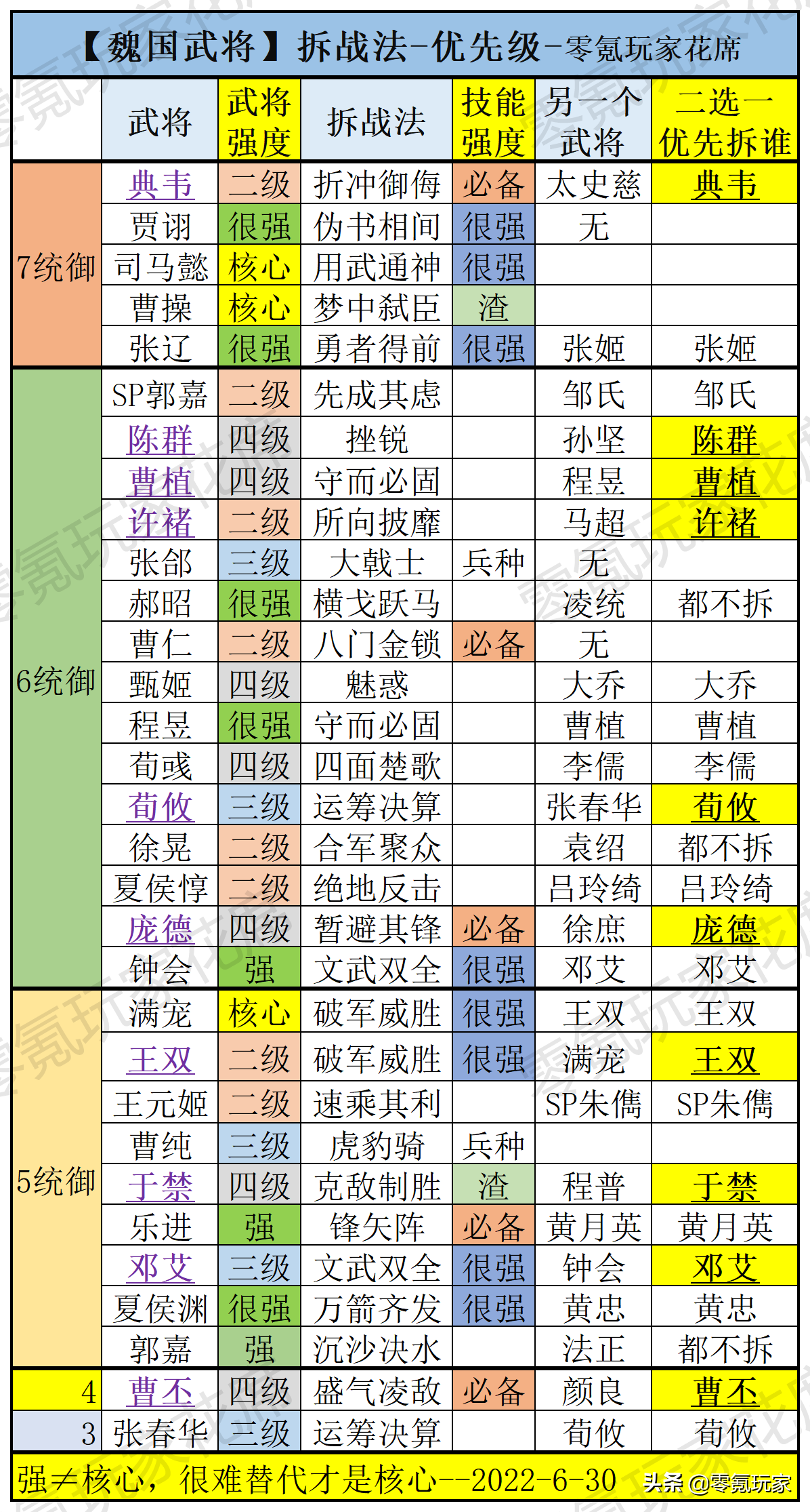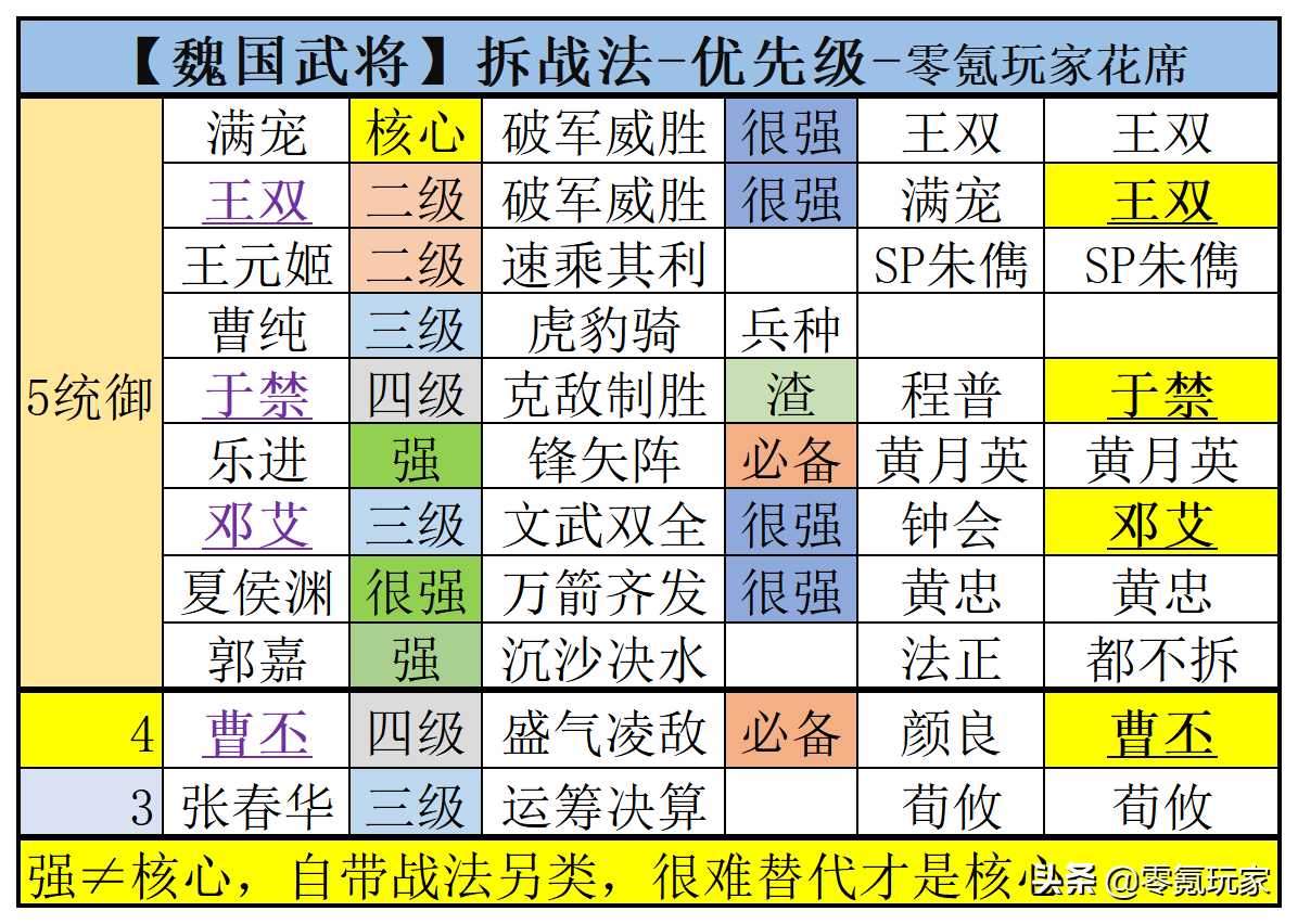 总结:曹操、司马懿、满宠属于核心武将,贾诩、张辽、郝昭、程昱、钟会、乐进、夏侯渊、郭嘉属于常用的强力武将,剩下的武将用的稍微再差一些。