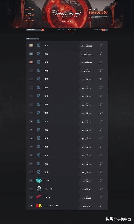 虽然这一奖金数目并不算少,但是相比去年Ti10是还是有了不小下滑。TI10奖金池总额为4000万美元左右,其中45.5%的奖金最终被欧洲战队Team Sprit夺走,他们在决赛3:2击败了中国战队PSG.LGD获得冠军,最终分得了约1820万美元的冠军奖金,这一数字甚至比当前总金额都高。不过由于2020年相关赛事因为疫情停办,所以去年的赛事奖金其实可以看做是累加了两个赛季的金额,所以会比以往赛事将近高出不少。