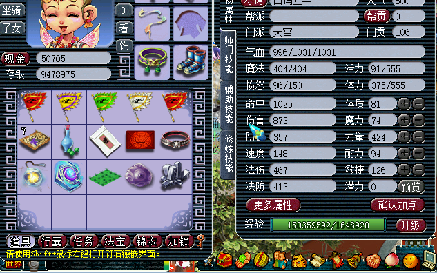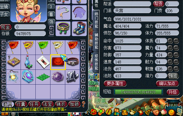 这是一个69级的号(属性就不要吐槽了),目前经验是149860709金钱直接归零。
