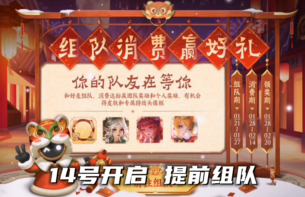 首先14号会开启的点券消费活动,按照去年的规则参考,会分为个人+组队两个模式,最高档次的奖励也会有所不同,其中如果是25人组队团,在达到消费额上限后,每个队员都有1次夺宝的机会,分别在2888史诗皮肤例如电玩小子+1款点券史诗皮肤如遇见神鹿,个人模式的点券最高档次奖励则为必得荣耀积分+专属像框,皮肤需要看运气抽取。