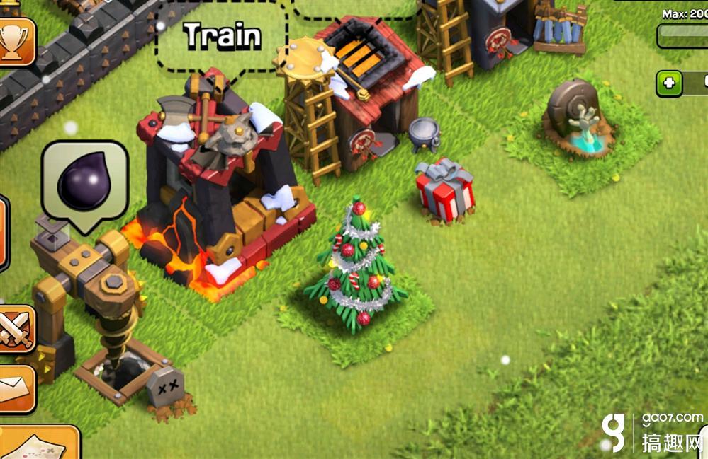 不仅如此,圣诞树不同于其他的节日道具,圣诞树是可以长出礼盒的,圣诞树旁边的礼盒就是圣诞树随机长得,如果点击礼盒的话,可以收获礼盒奖励,一个礼盒有5000的圣水,不过能不能长礼盒还是要看运气的。