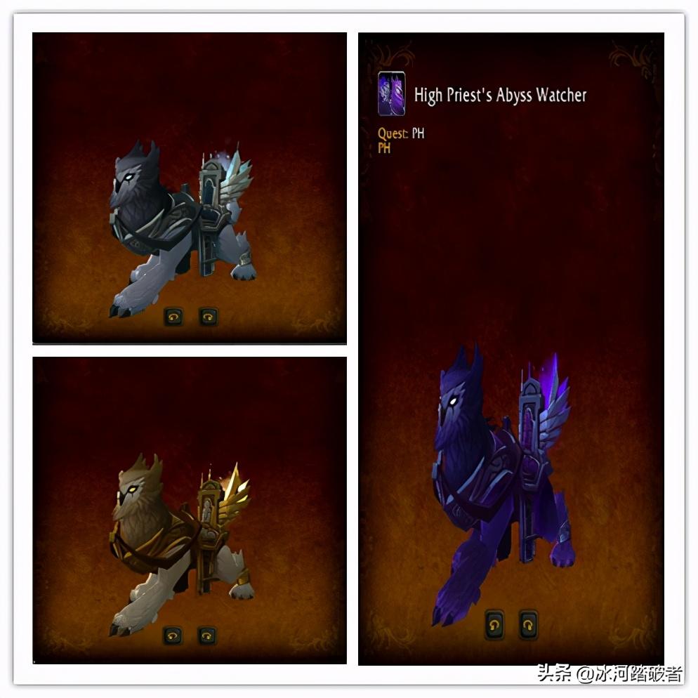 6、每个职业,不同专精对应的职业坐骑有不同配色,需要用职业大厅资源换取雕文。