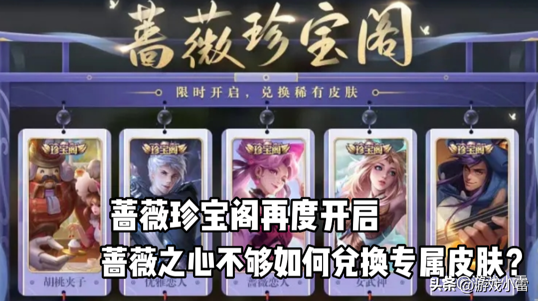 王者作为当下十分之火热的一款手游,每隔一段时间都是要更新的,那在这几天,官方开启了获取蔷薇之心的活动,不仅如此,在13号啊蔷薇珍宝阁将会再度开启,届时小伙伴们只要拥有足够多的蔷薇之心,就可以兑换蔷薇珍宝阁专属皮肤了。不过有一部分玩家蔷薇之心却不够,因为兑换一款蔷薇珍宝阁中的皮肤至少得需要150个蔷薇之心,那么在13号蔷薇珍宝阁再度开启之后,蔷薇之心不够的玩家们,如何兑换专属皮肤呢?看完你就学到了。