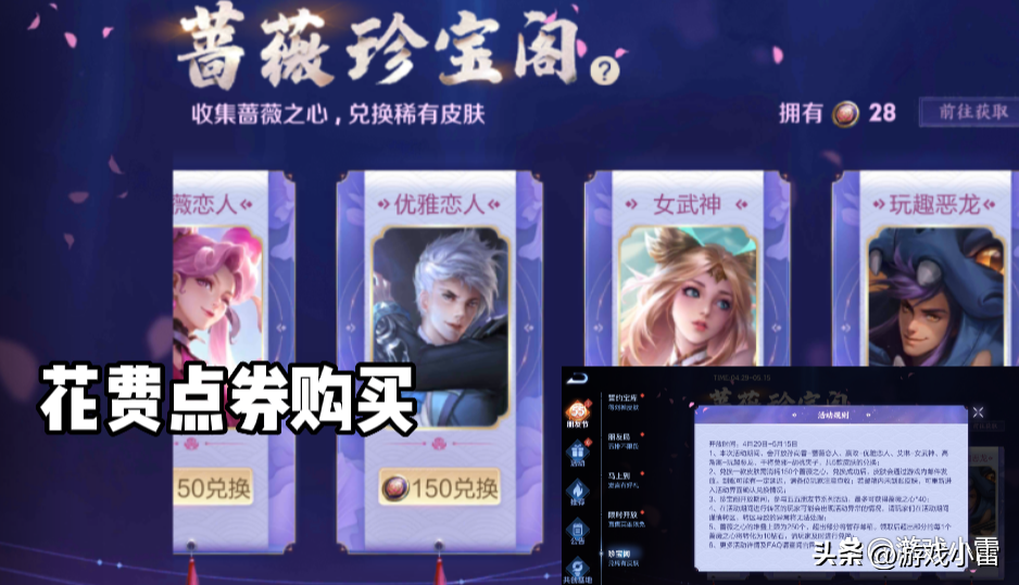 有的小伙伴们可能蔷薇之心就算把这段时间开启的获取蔷薇之心的活动参与完成之后,依旧蔷薇之心不够,正因如此,小伙伴们如果十分心急的话,还可以花费点券获取蔷薇之心,不过这个购买方法就有些复杂了,得需要进入王者营地才可以购买,其次王者营地的购买和游戏中的购买不同界面,不过花费的点券倒也不多,一点券就可以购买十个蔷薇之心,唯一不同的就是进入购买的方式有些难度。不过这也倒是蔷薇之心不够,如何快速获取蔷薇珍宝阁专属皮肤的方法之一。