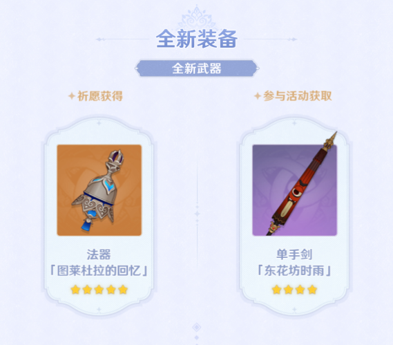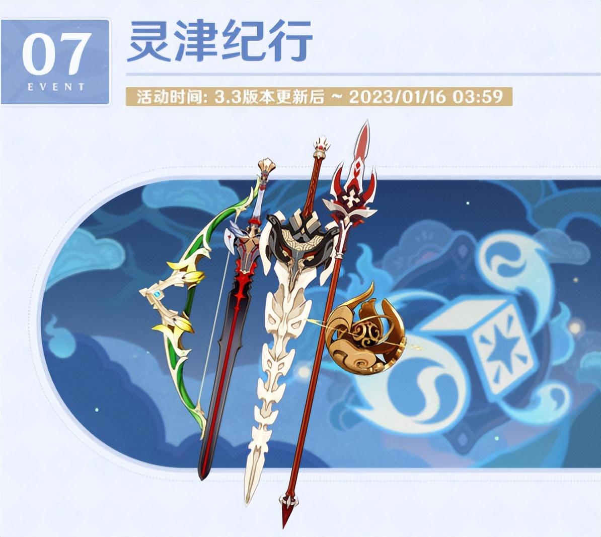 除了上述渠道外,目前米哈游也已经确认,《原神》3.3版本还将分别开启四个限时活动:秋津森夜试胆会、风行迷踪、跨野寻踪、迷城战线·沙域篇。其中,后三个活动均会励420原石,而秋津森夜试胆会除了奖励1100+原石外,旅行者们还能获得一把活动专属武器“单手剑·东花坊时雨”。可以预见,这将是3.3版本最重要的活动。