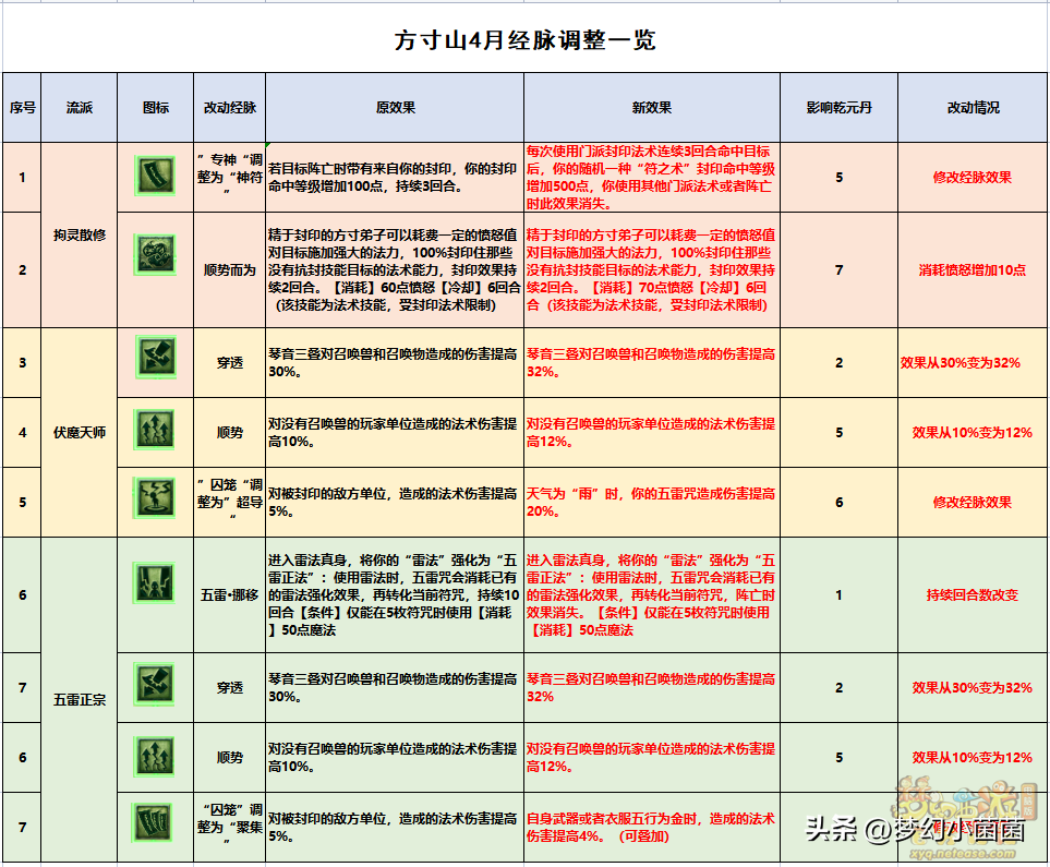 方寸山4月经脉改动一览表