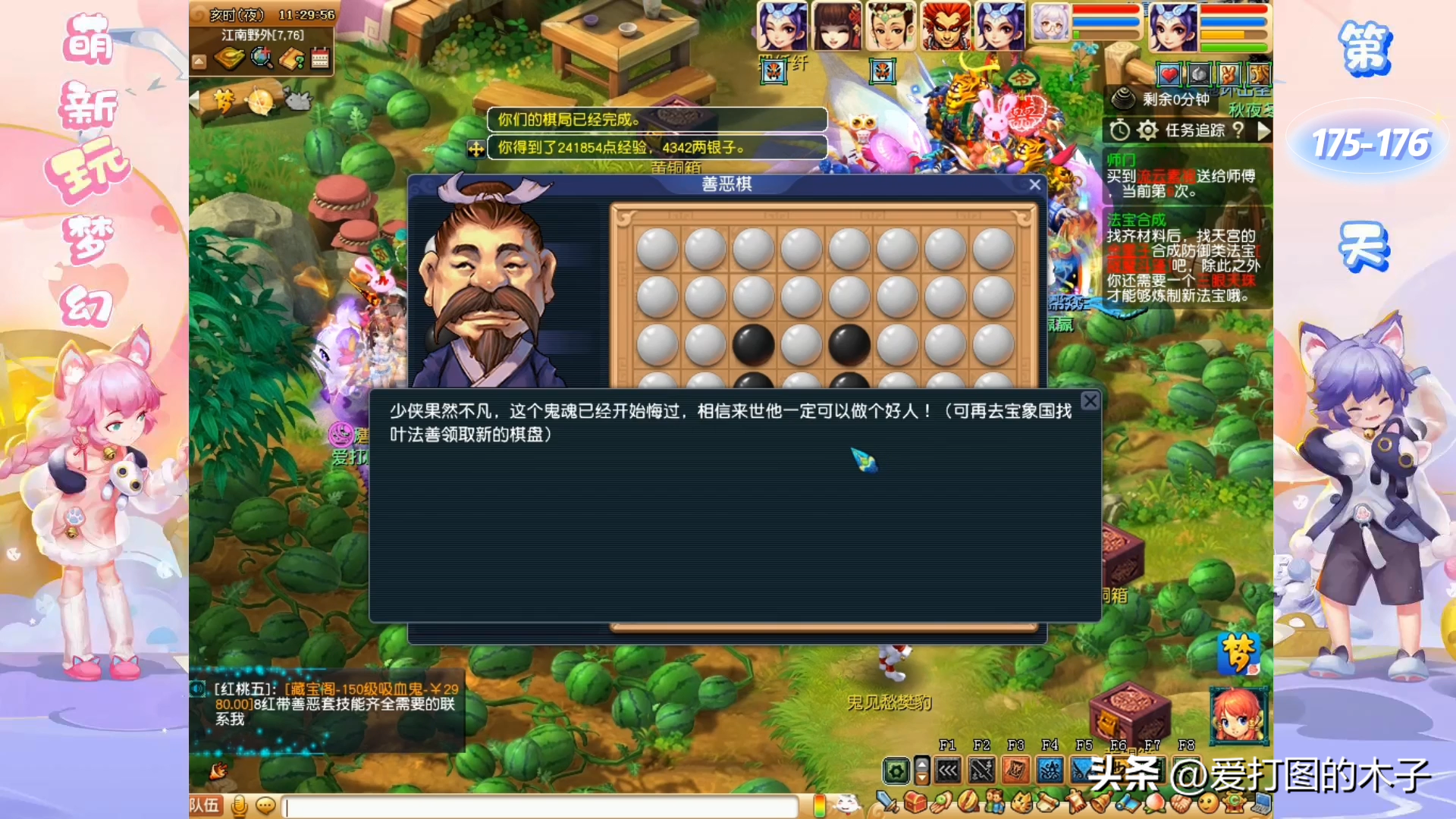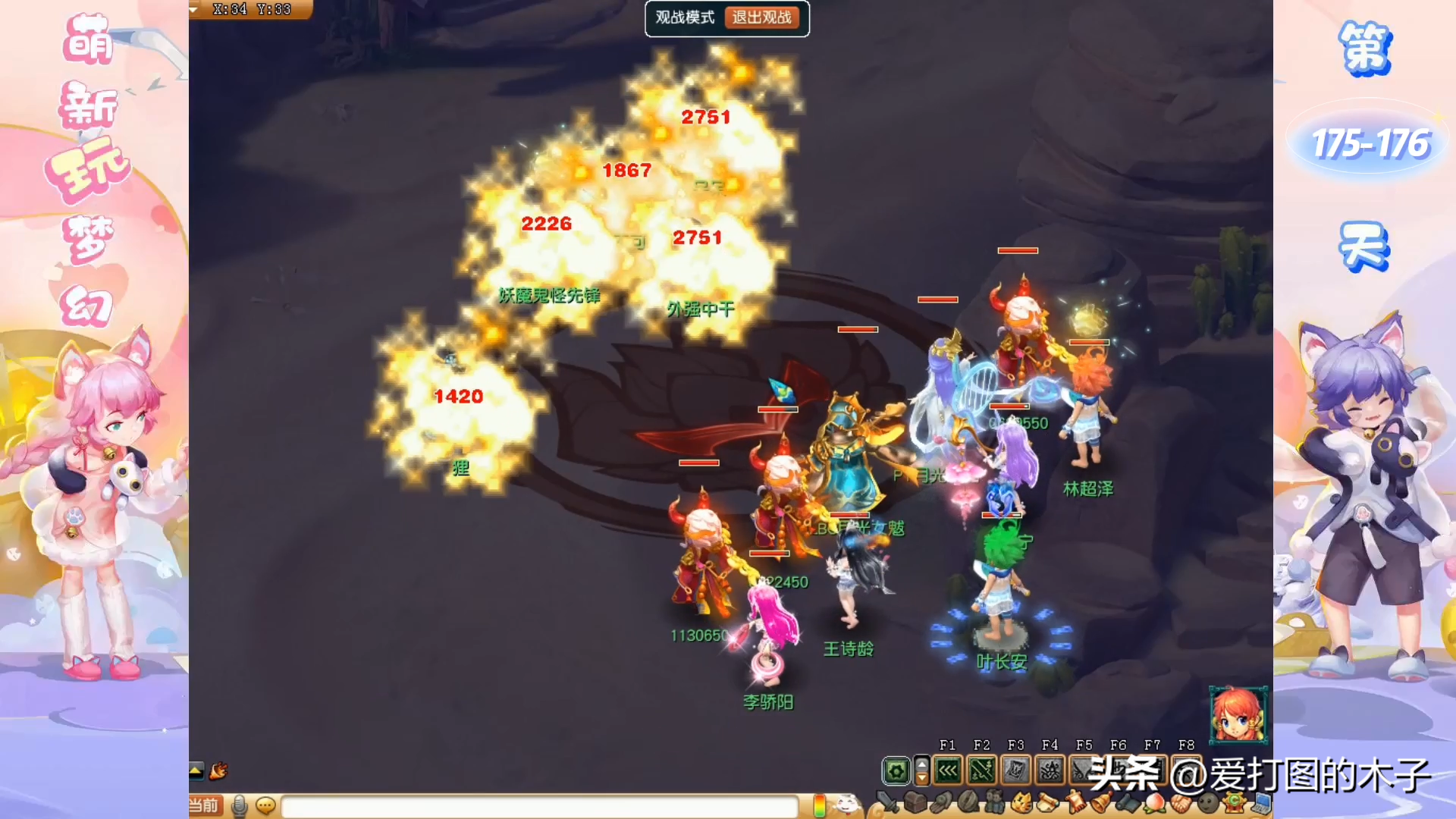 升级完技能,我就去参加慈心渡鬼的活动,也不知道怎么回事,每次天将在主怪的左边,我就被封印了,一封就中,是不是系统知道,我变厉害了,开始针对我了呀!我发现,天将使用横扫千军的话,无论我有没有被封印,队友都得挨揍,因为我速度没他快啊!要是天将使用后发制人或者鹰击的话,那我有没有被封印,就决定了队友挨不挨揍了!