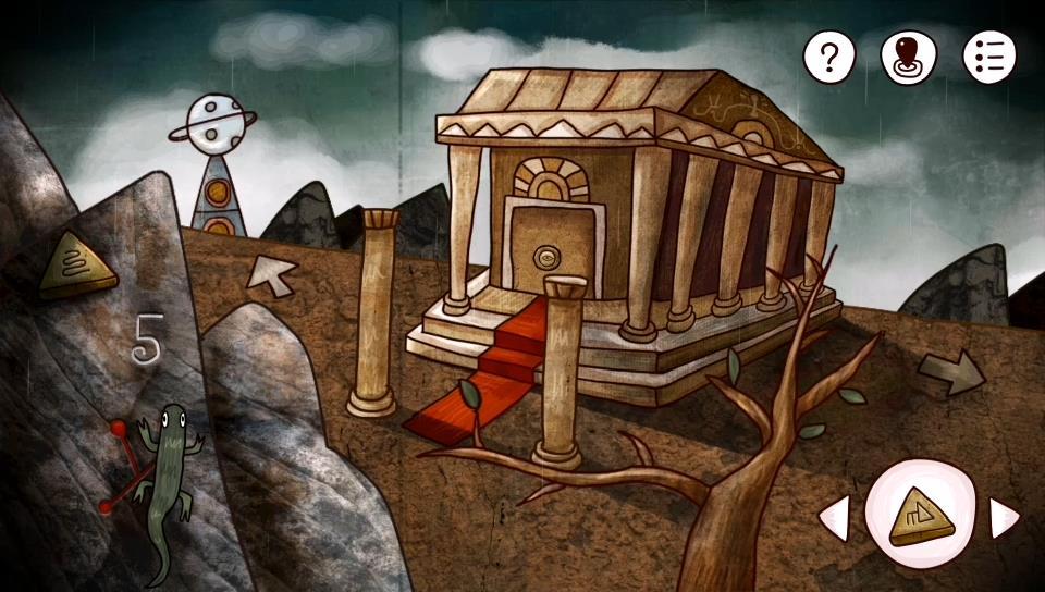 退出工厂,来到神庙前,左侧的石头上也有一个三角块,捡起来。