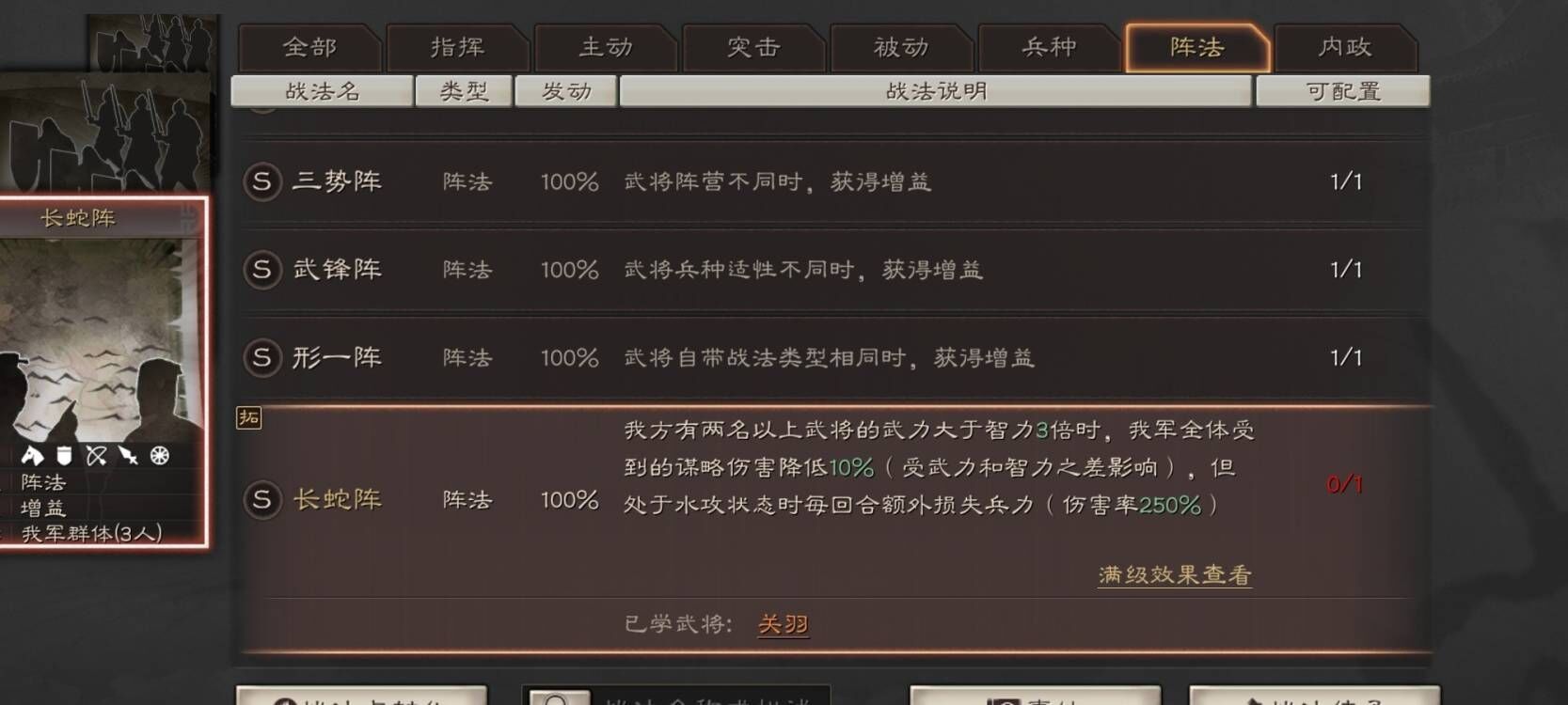 即便没有水攻队伍,你的队伍是否要依赖长蛇阵呢!这个减伤是针对谋略的,打打太尉、陆逊枪还可以,但在三势吕、虎臣横行的形势下,这个长蛇阵有啥意义。