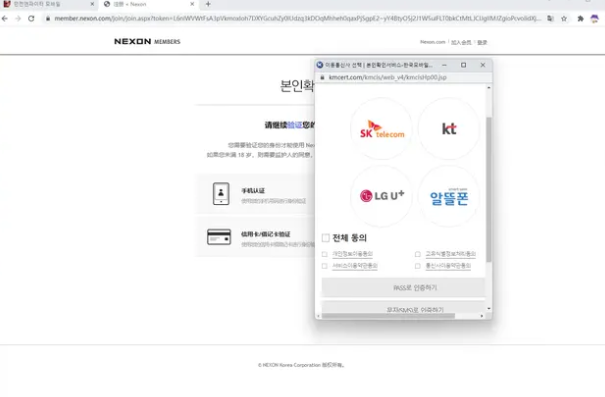 3.登录账号后,需要对身份进行验证,韩国游戏必备的一步,木有办法,可以选择韩国手游或支付方式进行认证,认证完成后就可以了。