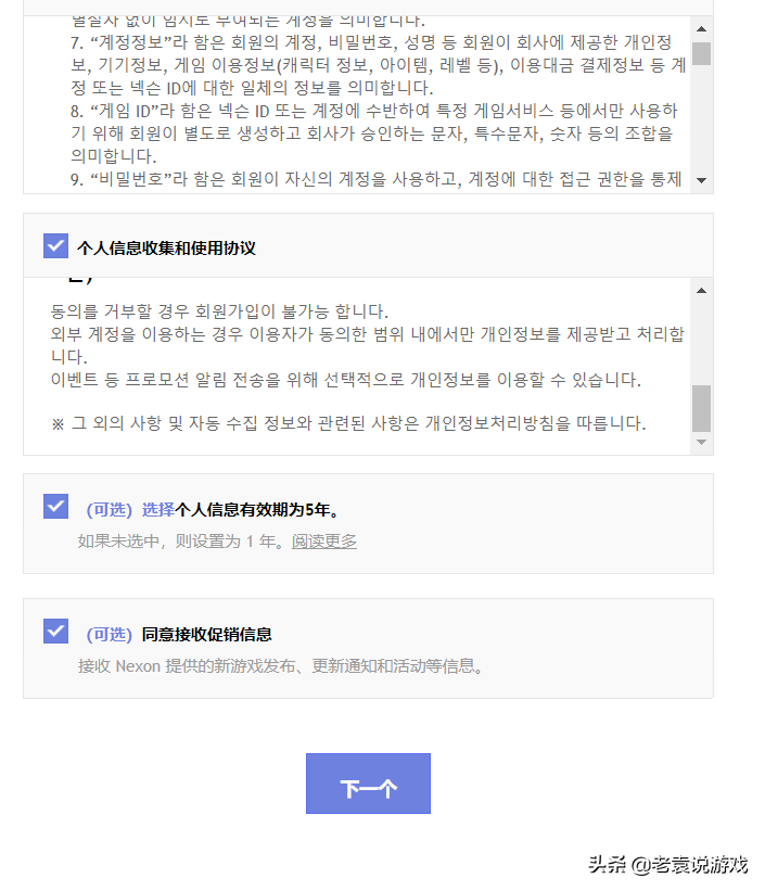 3、将我同意下面的选项都给勾选,再点击下一个。