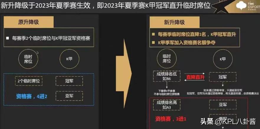 k甲冠军直接获得临时席位赛资格,两支已经获得临时席位的队伍,如MTG和XYG,在夏季赛成绩更差队伍则直接降级k甲,不能参与临时席位争夺。成绩更好的一支队伍可以跟k甲队伍亚军和季军队伍争夺一个临时席位名额。