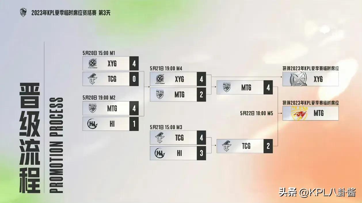 昨天结束的2023KPL夏季赛临时席位赛,XYG和MTG继续获得KPL临时席位。
