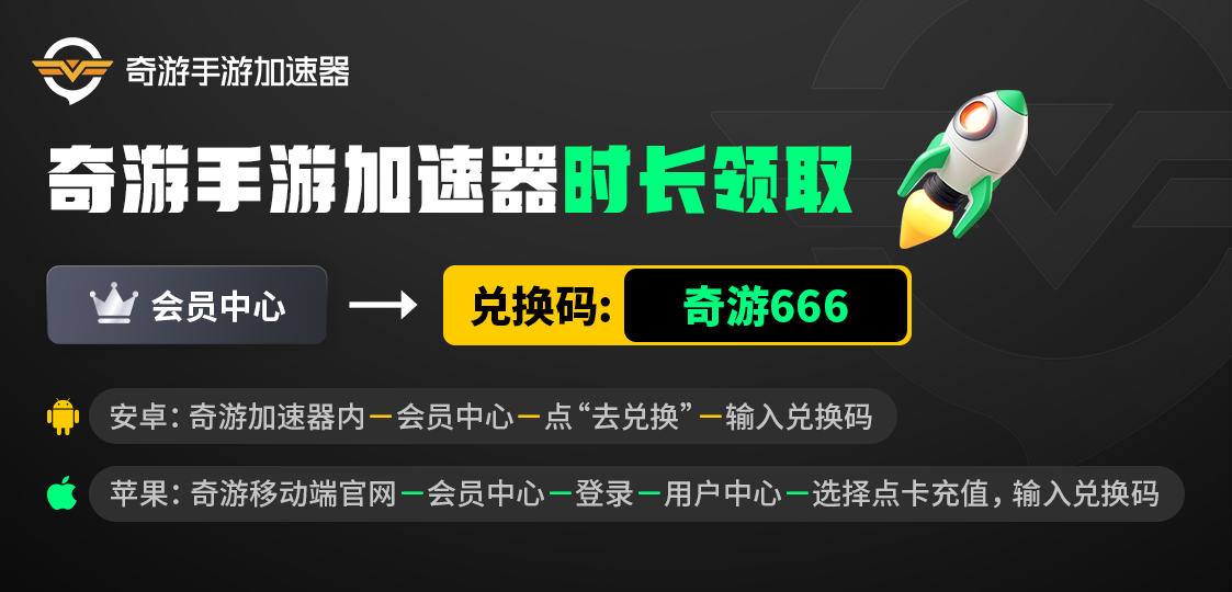之前没有用过这个加速工具的伙伴们,可以在会员中心填写兑换码“奇游666”来领取加速时长哦。